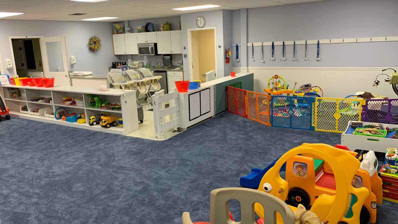 We have a large and beautiful nursery room, full of toys and plush soft carpet that is a shoe-free and cleaned weekly. It is only a short walk from the sanctuary.